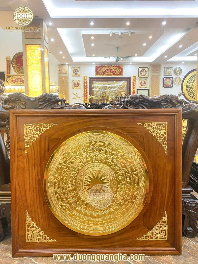 Tranh mặt trống đồng dát vàng khung gụ chuẩn bị lắp đặt tại gia đình khách hàng