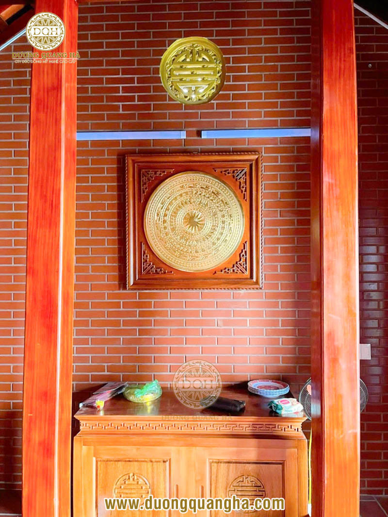 Thay vào đó, một bức tranh vừa vặn với mảng tường sẽ tạo nên sự cân bằng, giúp phát huy trọn vẹn giá trị biểu tượng của trống đồng trong việc thu hút vượng khí và tài lộc.