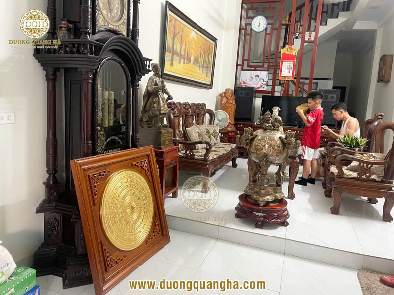 Đúc đồng Dương Quang Hà là điểm đến đáng tin cậy cho những ai đang tìm kiếm tranh mặt trống đồng thủ công tinh xảo. Với hơn hai thập kỷ gìn giữ và phát triển nghề đúc đồng truyền thống, thương hiệu đã chiếm được niềm tin của hàng nghìn gia đình và tổ chức trên khắp cả nước. Hiện tại, chúng tôi sở hữu 8 showroom trưng bày sản phẩm đa dạng, khách hàng có thể trực tiếp đến tham khảo, lựa chọn và đặt mua theo nhu cầu.
