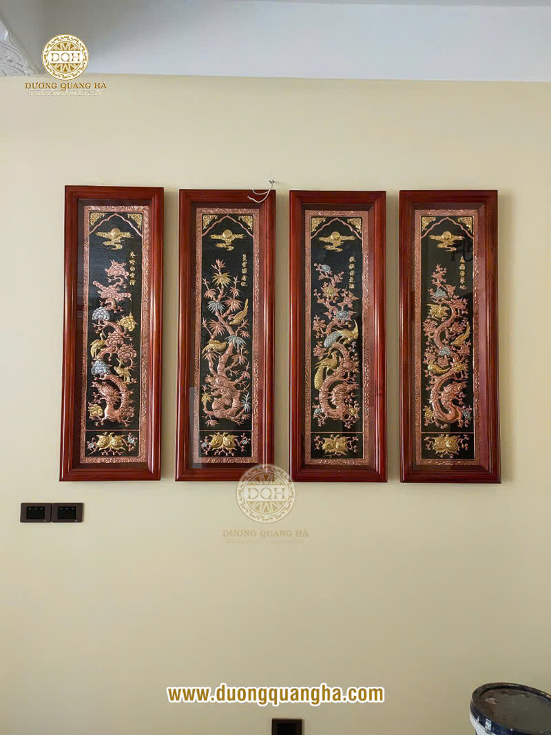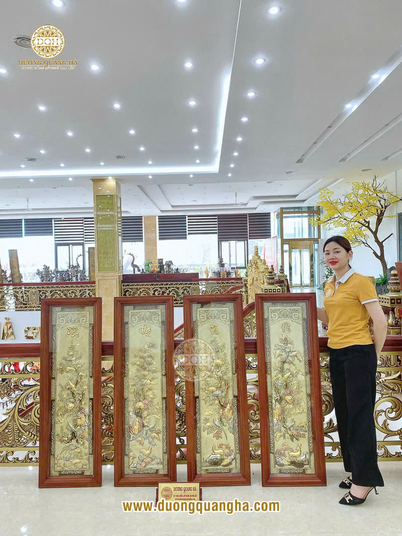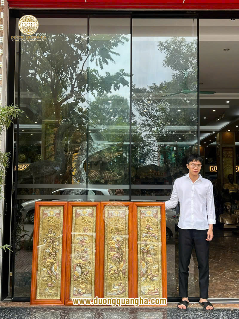 Bên cạnh các mẫu tranh tứ quý đẹp bày bán số lượng lớn tại hệ thống showroom trên toàn quốc, Đúc đồng Dương Quang Hà còn nhận thiết kế và chế tác tranh theo yêu cầu của từng khách hàng. Điều này đảm bảo mỗi bức tranh không chỉ là vật phẩm trang trí mà còn mang dấu ấn riêng, phù hợp với không gian và sở thích của từng gia chủ.
