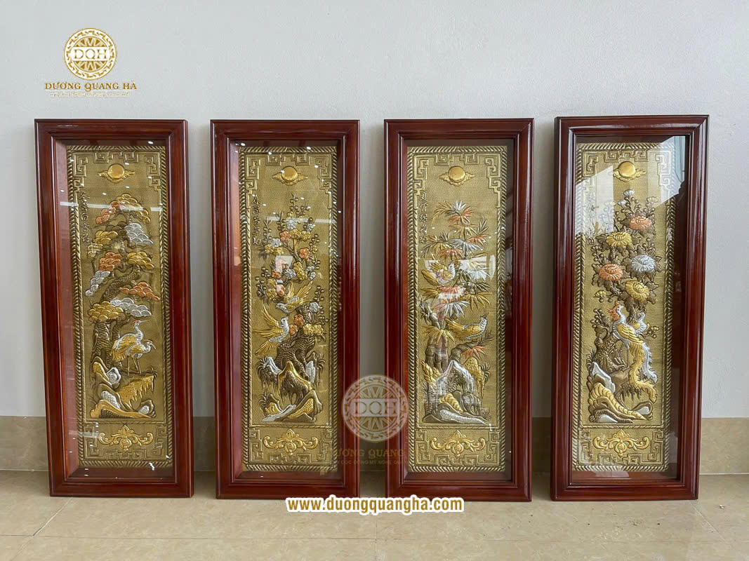 Tại Đúc đồng Dương Quang Hà, khách hàng có thể lựa chọn nhiều mẫu tranh tứ quý khác nhau, từ dòng tranh bình dân đến các phiên bản tranh cao cấp để phù hợp với nhu cầu trang trí hay làm quà biếu tặng. Dưới đây là 15 mẫu tranh tứ quý được ưa chuộng nhất: