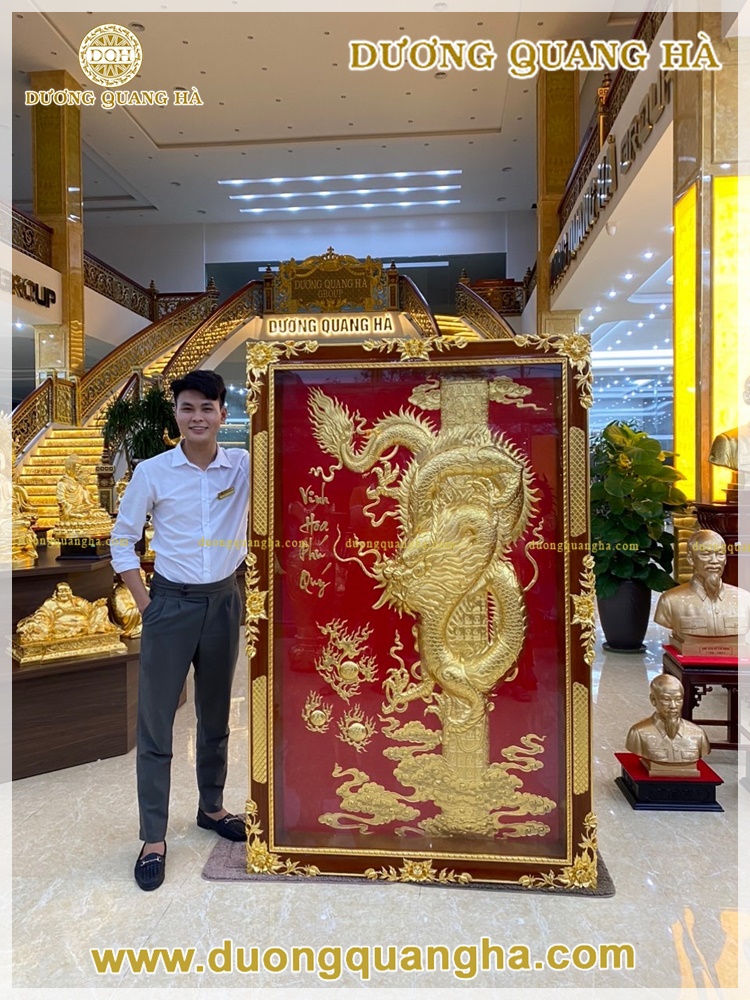 Chất liệu : Đồng gò dày 1 ly dát vàng 9999 + khung gỗ hương dát vàng hoa văn