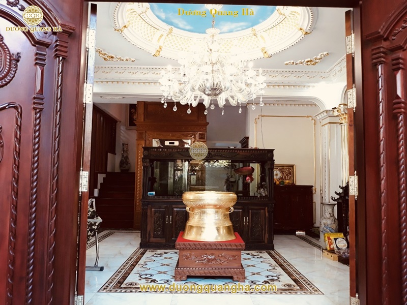 Tên sản phẩm : Quả Trống Đồng Dát Vàng 9999