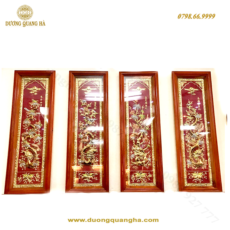 Tên gọi sản phẩm: Tứ quý 1,2m đồng vàng liền tấm đồng nền đỏ