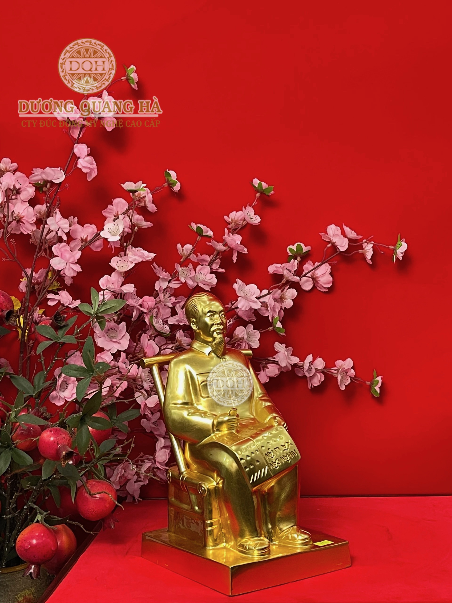chất liệu : đúc bằng đồ đỏ - dát vàng 9999