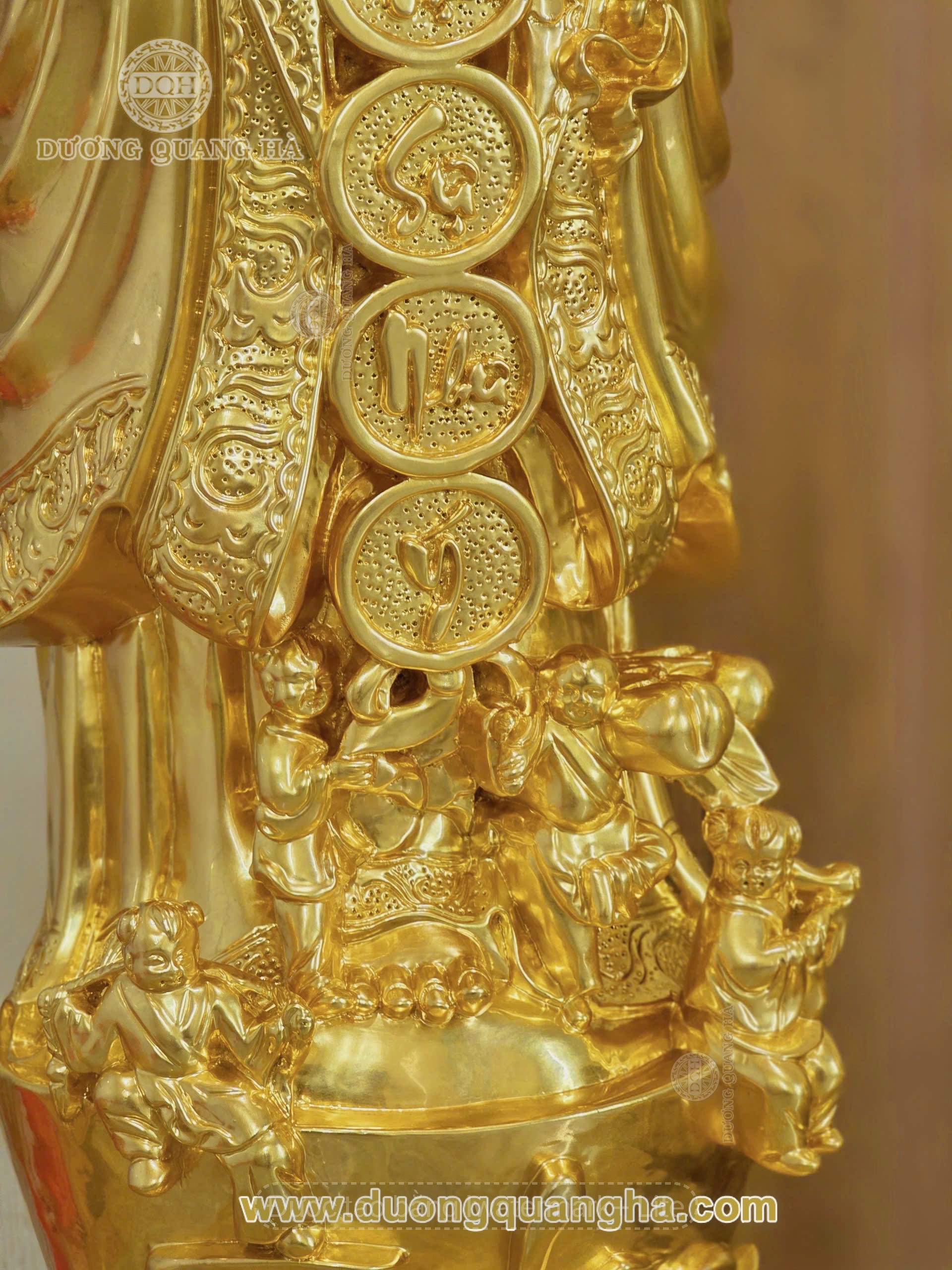 Sau một thời gian phối hợp nhịp nhàng giữa khách hàng và đội ngũ nghệ nhân, công nhân tại xưởng, từ khâu lên mẫu, tạo khuôn, đúc tượng, tinh chỉnh… đội ngũ Đúc đồng Dương Quang Hà đã hoàn thiện và bàn giao cho khách hàng Tóm tắt về sản phẩm: Tất cả sản phẩm được đúc, gia công chế tác, chạm khảm tất cả đều được làm thủ công bằng tay mỗi sản phẩm thực sự là một tác phẩm đồng mỹ nghệ tinh xảo đến mức cao nhất, với những đường nét lưu loát, có giá trị thực sự cao của những nghệ nhân, những người thợ tài hoa từ làng nghề đúc đồng Huyện Ý Yên, Tỉnh Nam Định. Kích thước sản phẩm: