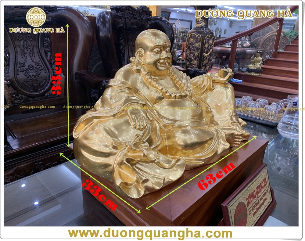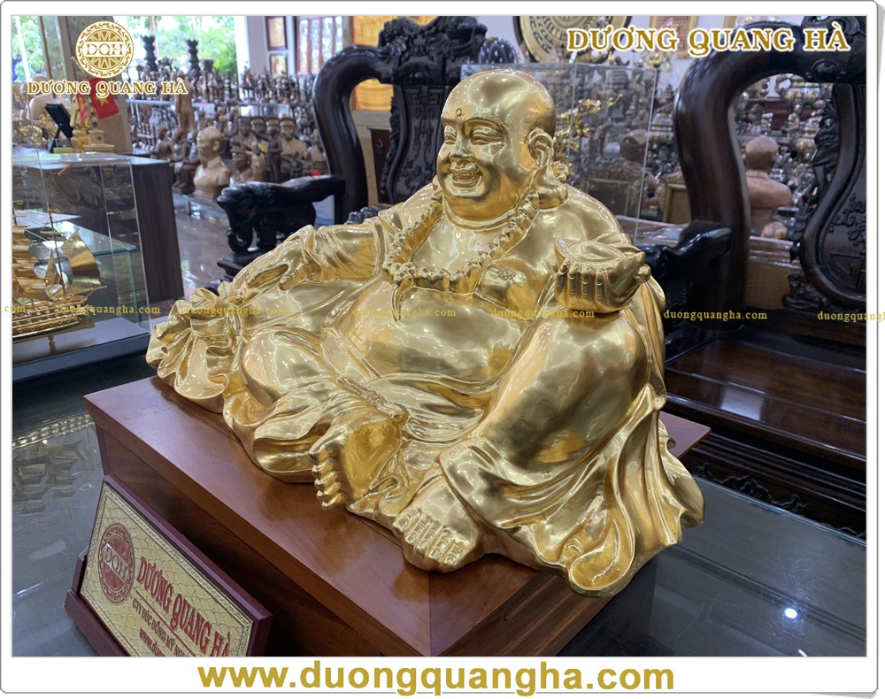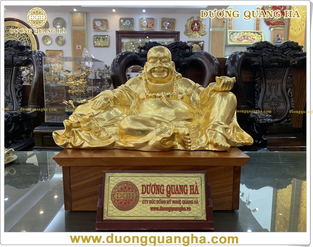 Tên sản phẩm : Tượng Di Lạc Ngồi Bị Tiền Cao 63cm Đúc Đồng Vàng Dát Vàng 9999