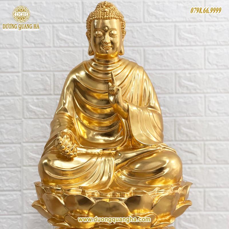 Tên gọi sản phẩm: Tượng đồng Phật Thích Ca ngồi bệ sen cao 61cm dát vàng 9999