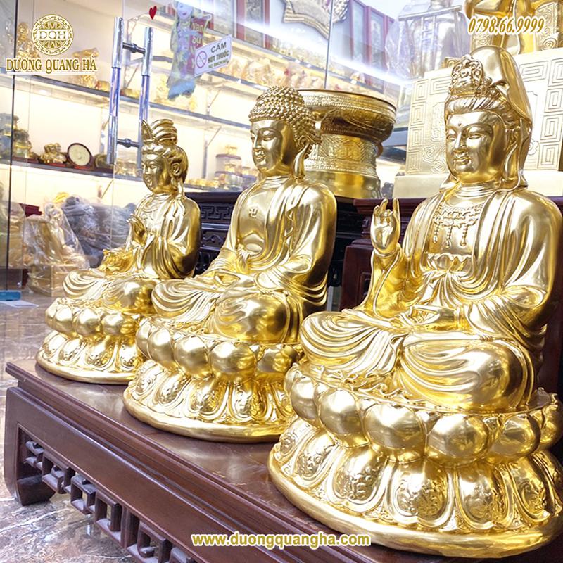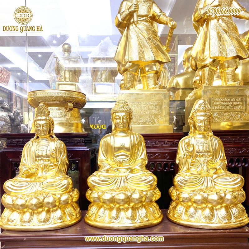 Tên gọi sản phẩm: Tượng đồng Tam Thánh Phật dát vàng 9999