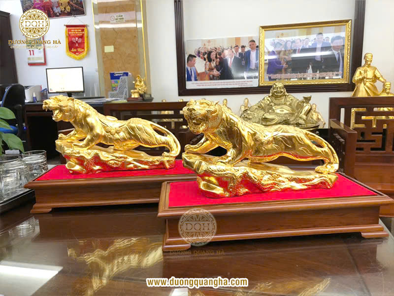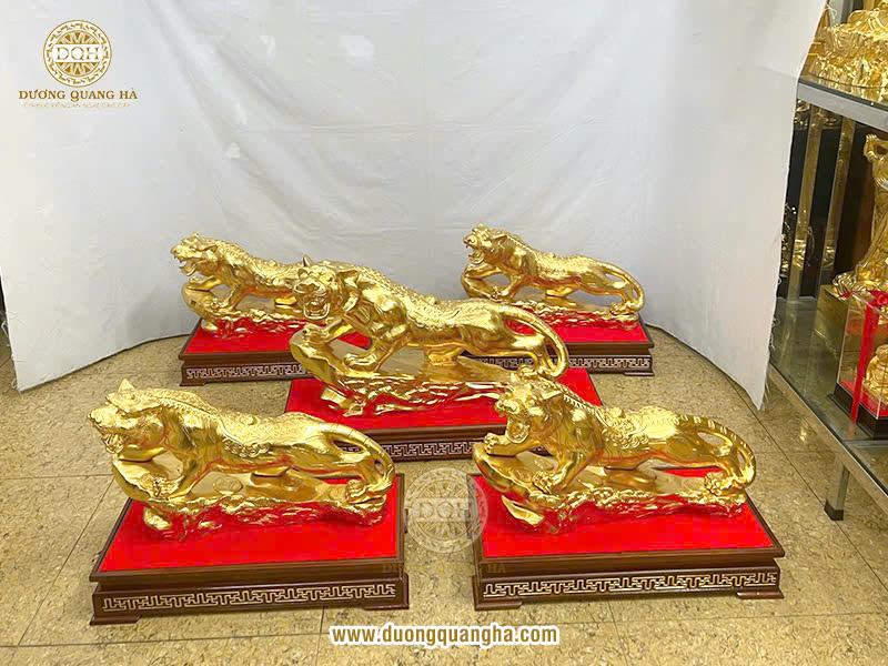 Điểm mạnh của Đúc đồng Dương Quang Hà chính là sự tỉ mỉ trong từng chi tiết. Các đường nét của tượng hổ được chạm khắc tinh xảo, thể hiện rõ nét sự mạnh mẽ nhưng lại đầy nghệ thuật. Hiện nay, Đúc đồng Dương Quang Hà đang cung cấp đa dạng mẫu tượng hổ bằng đồng cho khách hàng lựa chọn: tượng hổ đúc đồng đỏ, tượng hổ bằng đồng dát vàng 9999…