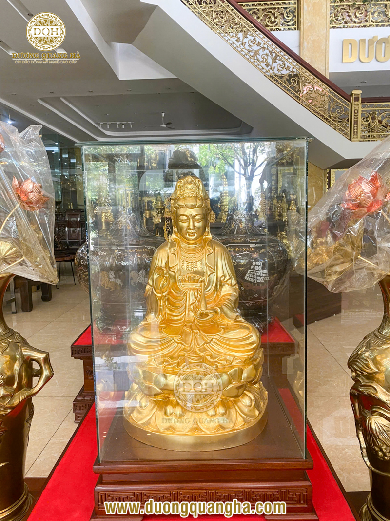 Tượng Quan Âm trưng trong tủ kính sẵn sàng bàn giao cho khách hàng