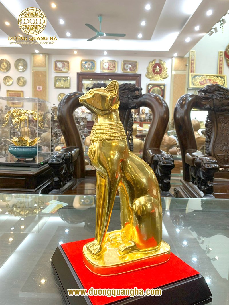 Trong phong thủy, mèo được xem là một linh thú mang lại cát tường. Khi được chế tác thủ công theo phương pháp mạ vàng, dát vàng, giá trị về thẩm mỹ và phong thủy của tượng mèo càng tăng cao hơn.