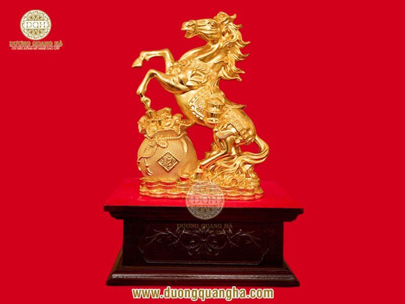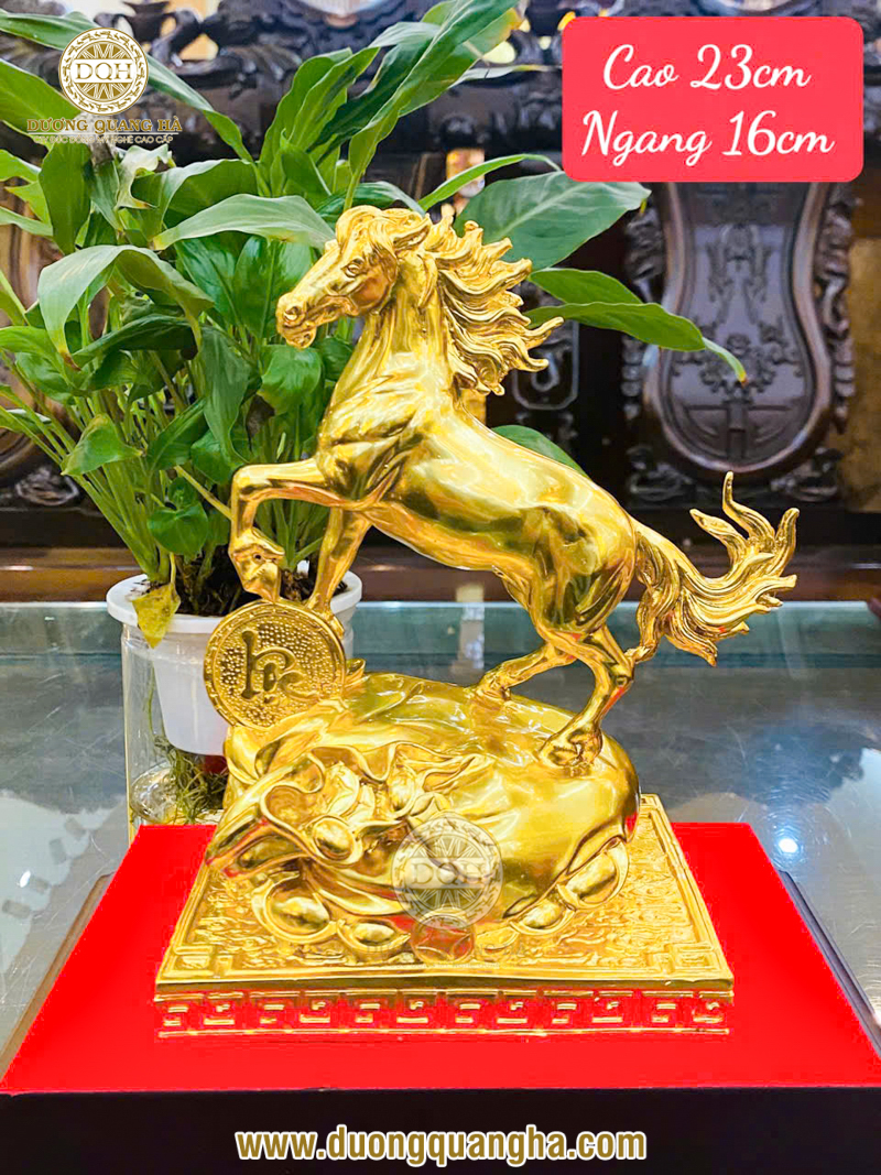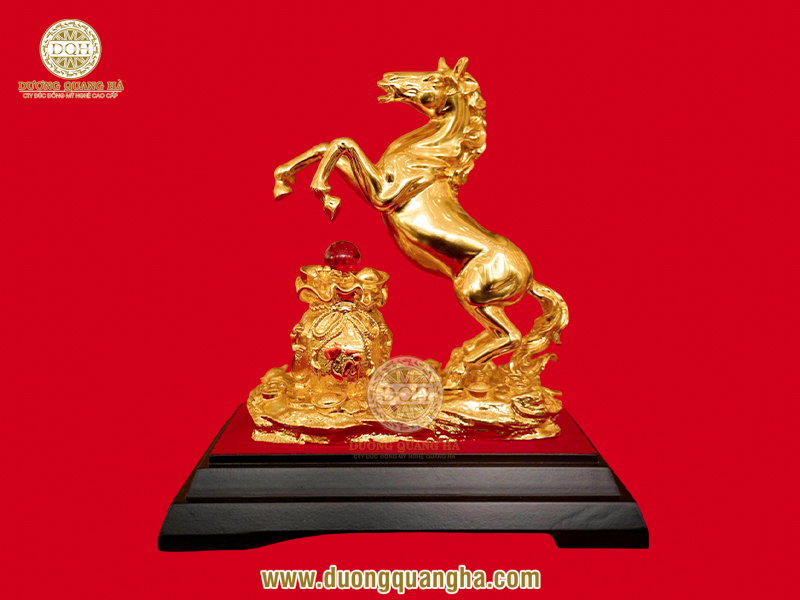 Tượng ngựa bằng đồng đón lộc dát vàng 23 x 16 cm