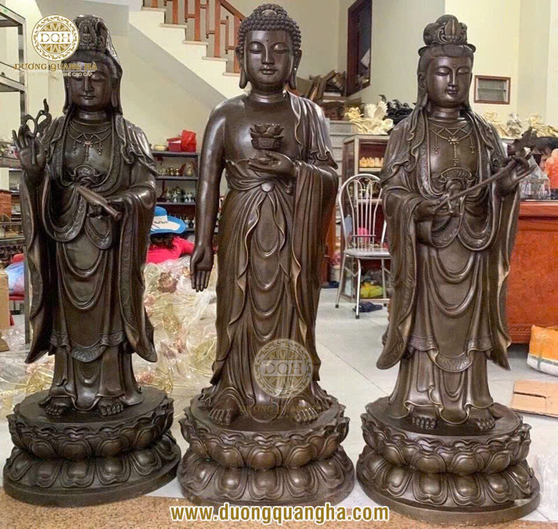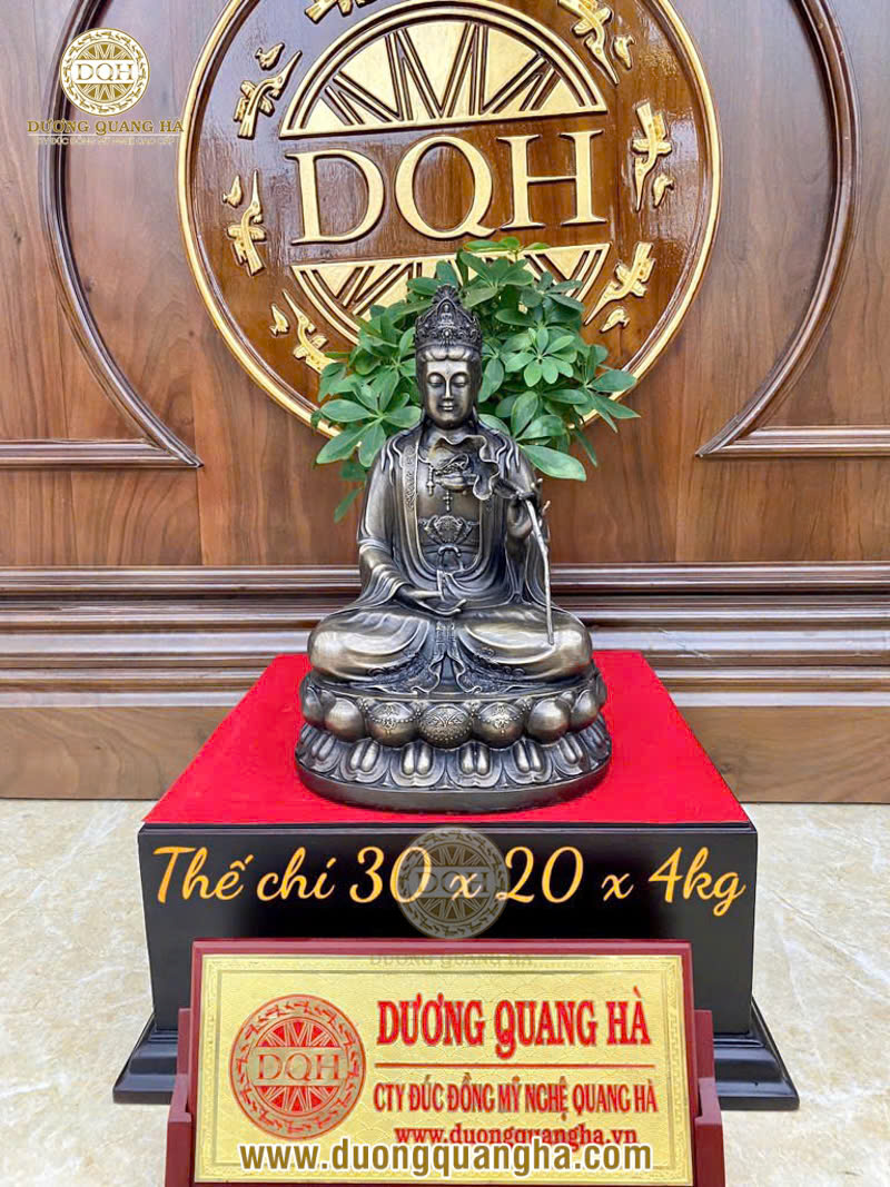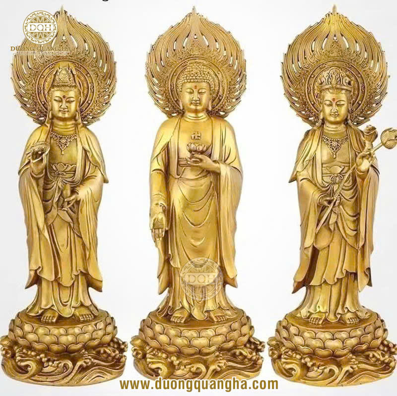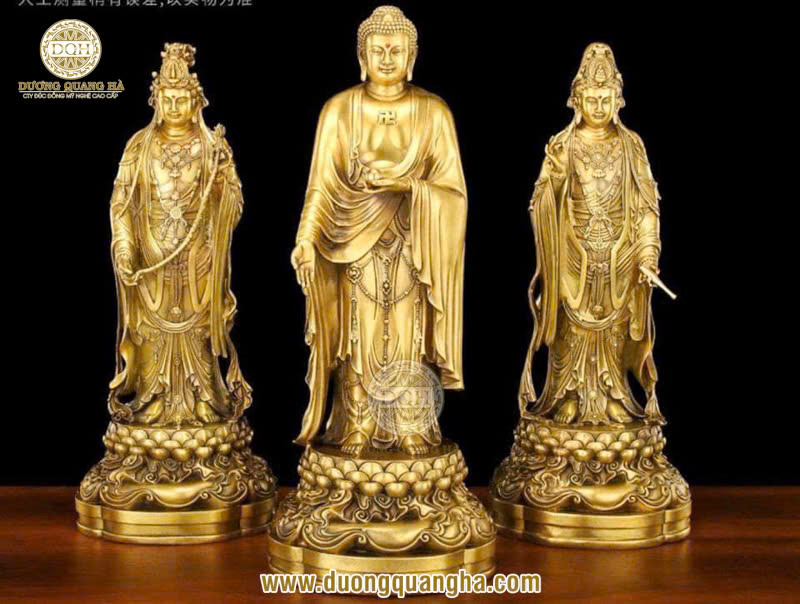 - Chất liệu cao cấp: Tượng được làm từ đồng nguyên chất, mạ vàng hoặc dát vàng, không chỉ bền bỉ mà còn tăng thêm sự trang trọng và giá trị phong thủy cho không gian thờ tự.
