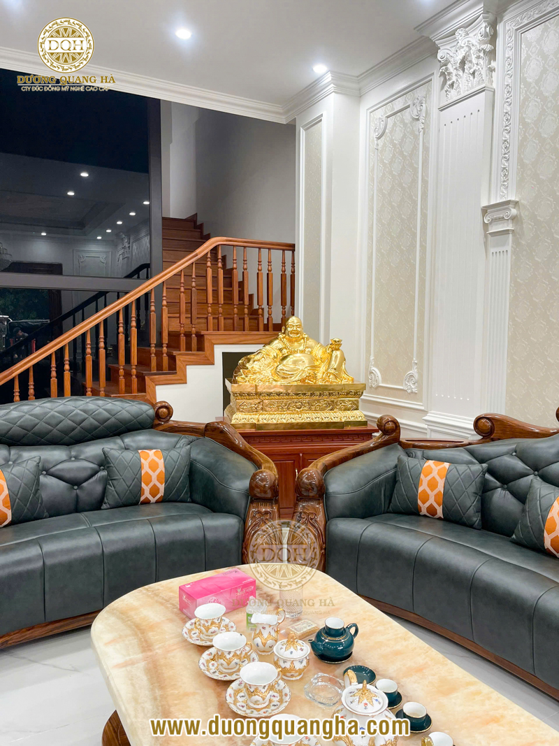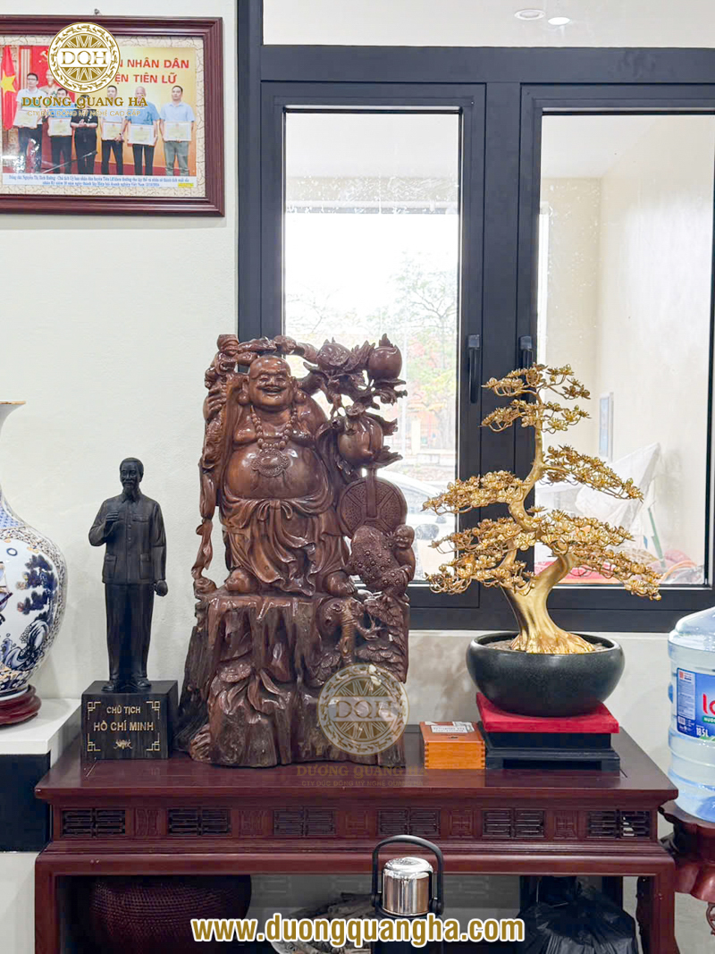 Tượng Phật Di Lặc dát vàng đặt kệ trưng trong phòng khách
