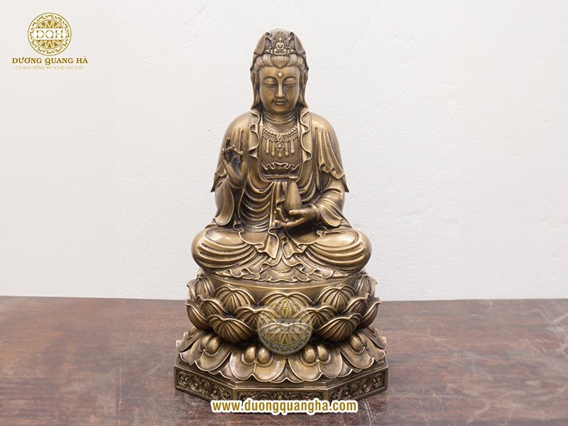 Trong khi đó, tượng Phật Quan Âm ngồi thường xuất hiện trên ban thờ tại các đình, chùa, miếu, đền hoặc trong không gian thờ tự tại gia. Tư thế ngồi thường mang đến sự gần gũi và tĩnh lặng, thích hợp cho những không gian nhỏ hẹp nhưng đầy đủ nghi lễ và trang nghiêm.