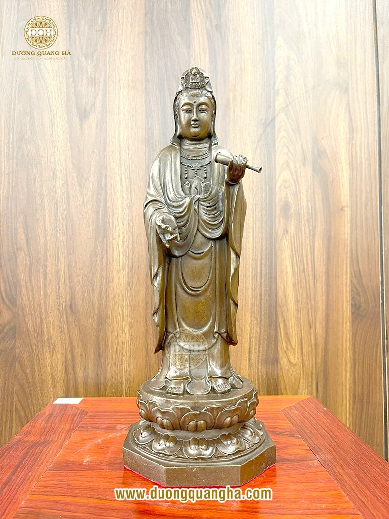 Tượng Phật Quan Âm đứng thường được đặt ở những nơi có không gian rộng lớn, như đỉnh núi, hòn non bộ, sân chùa hoặc thậm chí trên sân thượng của các gia đình thành thị. Dáng đứng mang lại sự linh thiêng và uy nghiêm, tạo nên một không gian thoáng đãng, thanh tịnh, hài hòa với thiên nhiên.