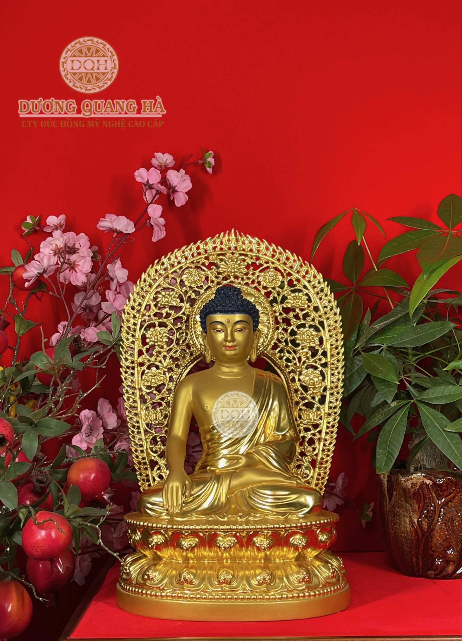 chất liệu : đúc bằng đồng đỏ - dát vàng 9999