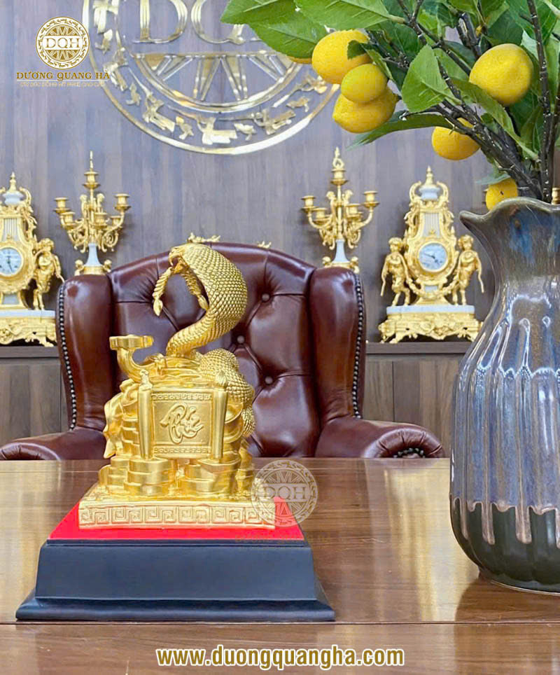 Mẫu tượng rắn chữ Lộc bằng đồng mạ vàng, giúp thu hút tài lộc, may mắn cho gia chủ