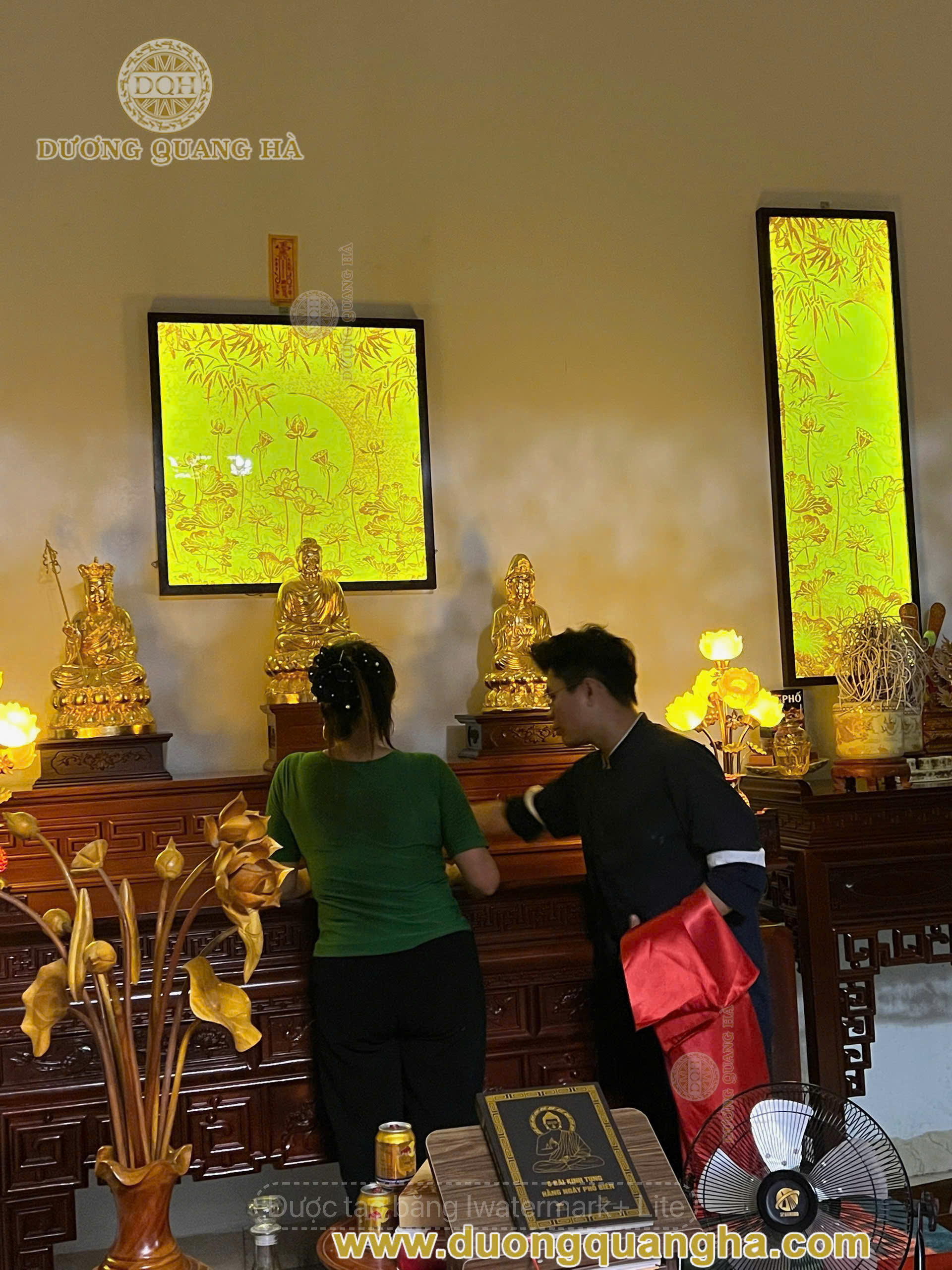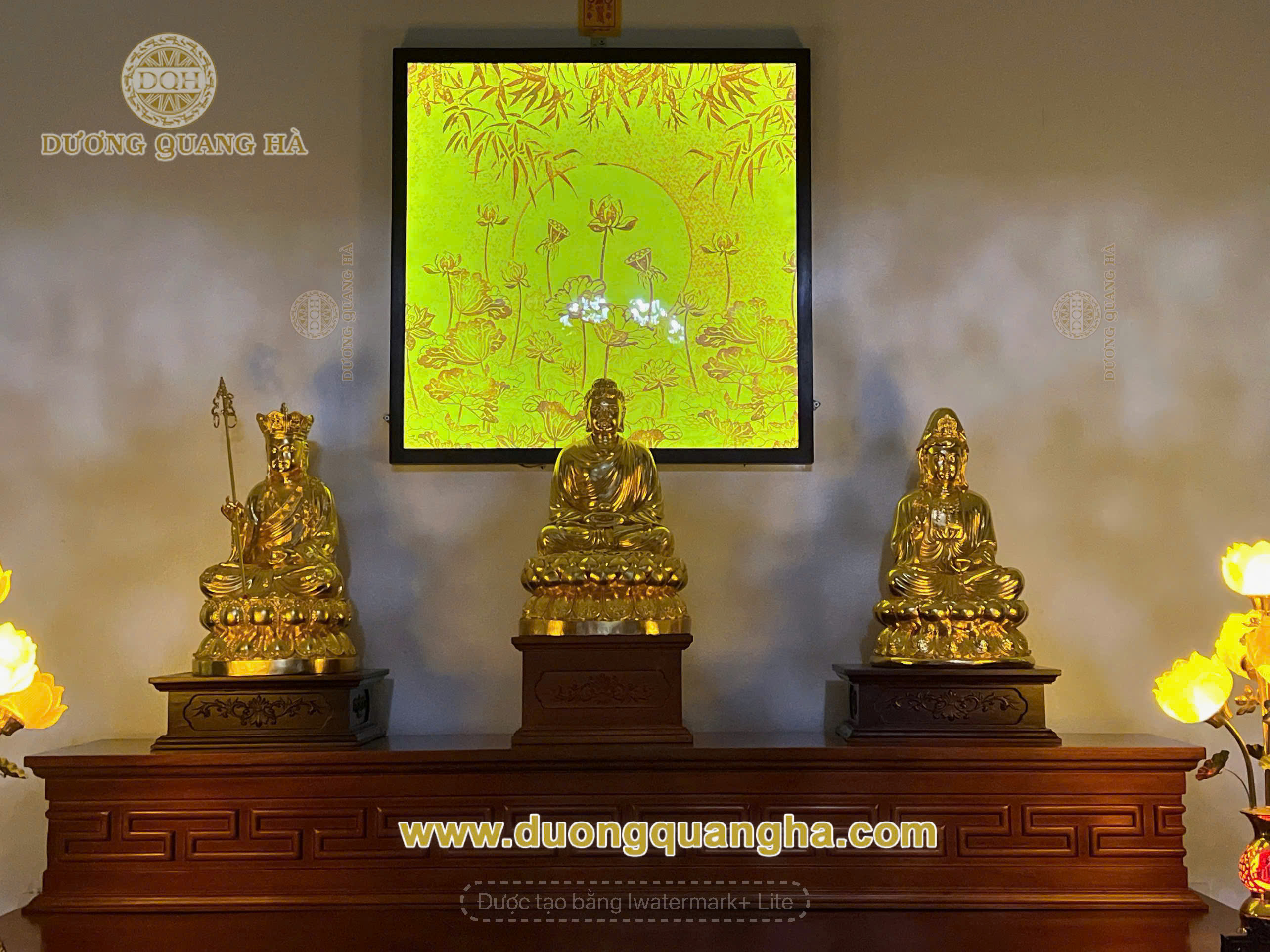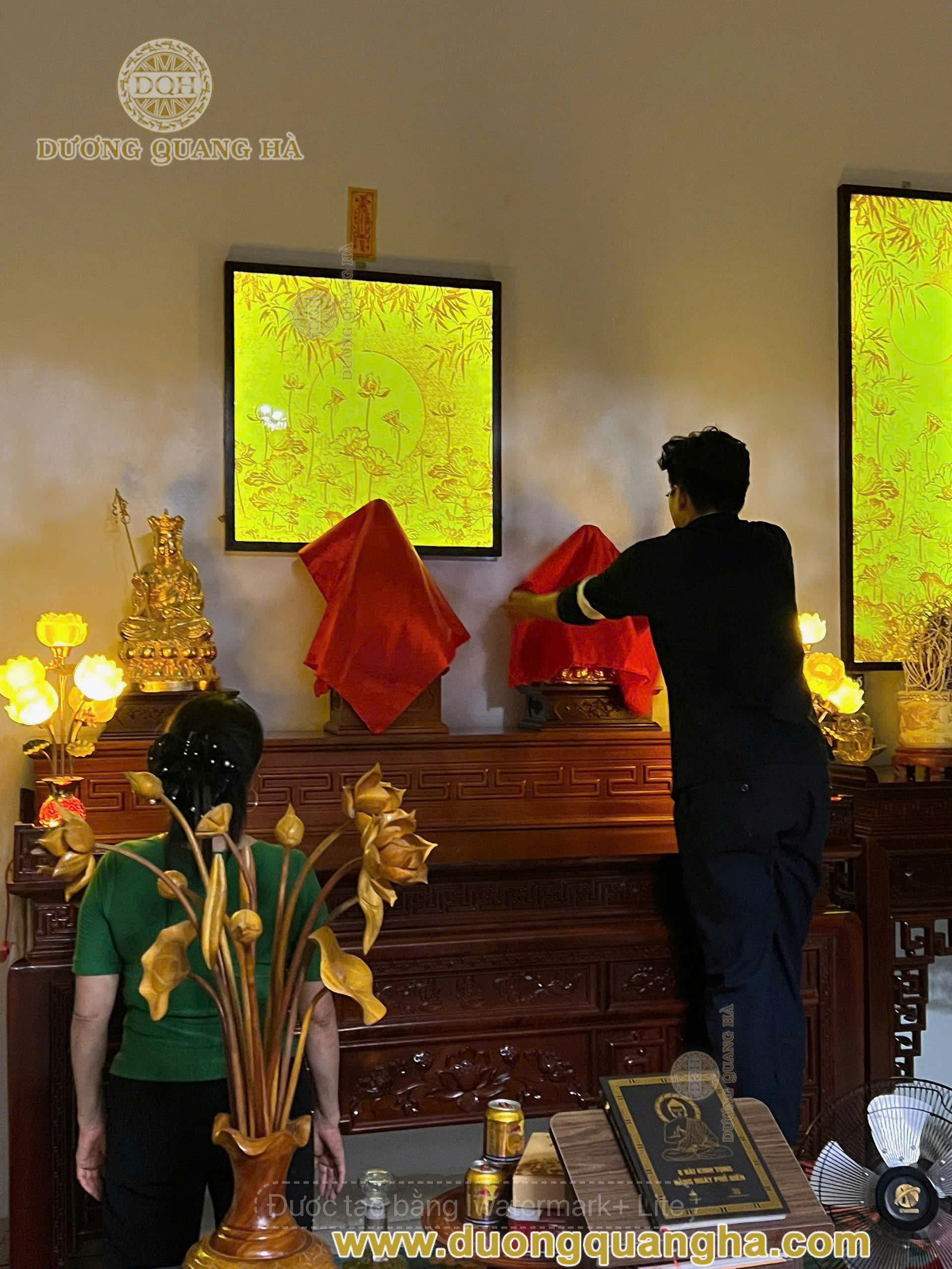 Sau một thời gian phối hợp nhịp nhàng giữa khách hàng và đội ngũ nghệ nhân, công nhân tại xưởng, từ khâu lên mẫu, tạo khuôn, đúc tượng, tinh chỉnh… đội ngũ Đúc đồng Dương Quang Hà đã hoàn thiện và bàn giao cho khách hàng Tóm tắt về sản phẩm: Tất cả sản phẩm được đúc, gia công chế tác, chạm khảm tất cả đều được làm thủ công bằng tay mỗi sản phẩm thực sự là một tác phẩm đồng mỹ nghệ tinh xảo đến mức cao nhất, với những đường nét lưu loát, có giá trị thực sự cao của những nghệ nhân, những người thợ tài hoa từ làng nghề đúc đồng Huyện Ý Yên, Tỉnh Nam Định. Kích thước sản phẩm: