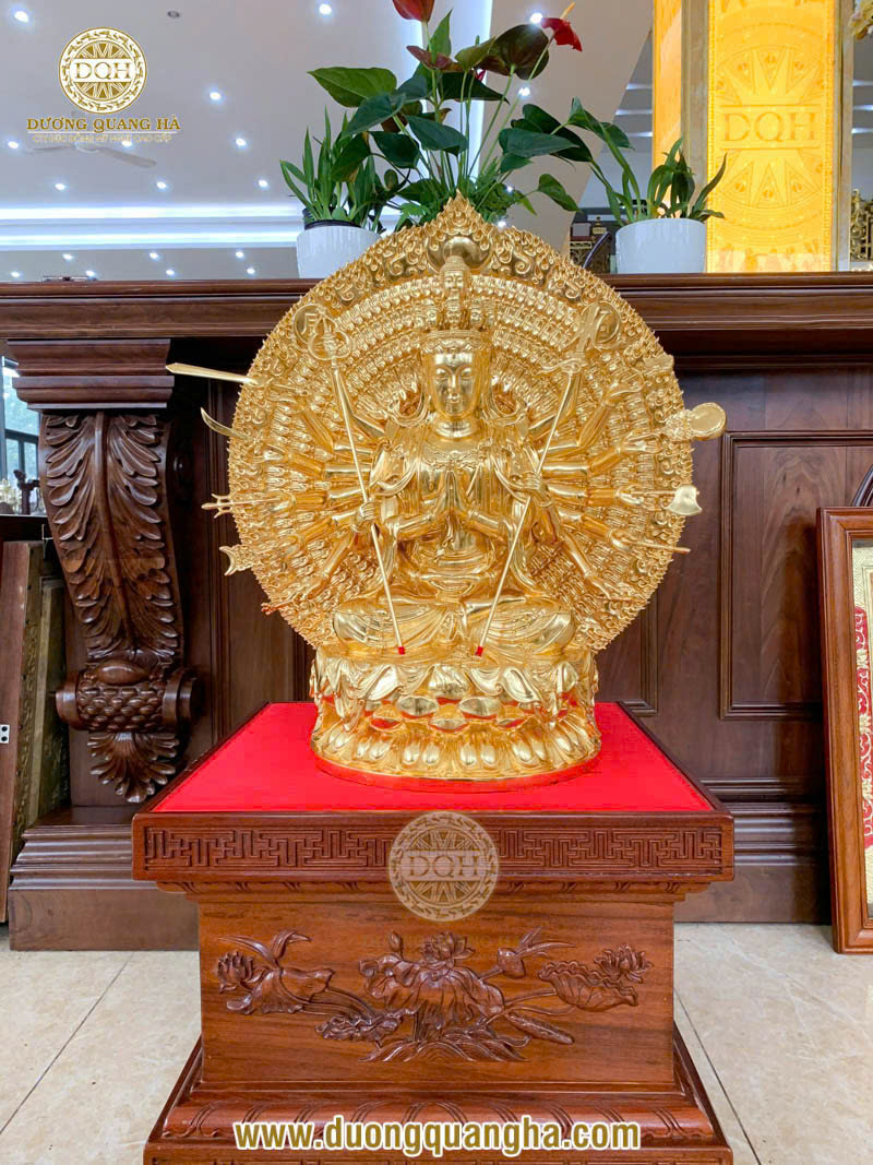 Tại Đúc đồng Dương Quang Hà, chúng tôi tự hào là xưởng sản xuất đồ thờ bằng đồng lớn nhất Nam Định. Mỗi bức tượng Phật của chúng tôi đều được chế tác bởi các nghệ nhân có tay nghề cao, đảm bảo đem đến những sản phẩm chất lượng nhất cho quý khách. Dưới đây là một số mẫu tượng Thiên Thủ Thiên Nhãn bằng đồng đẹp, bán chạy tại Đúc đồng Dương Quang Hà: