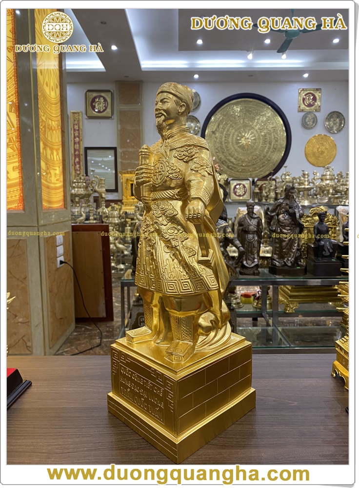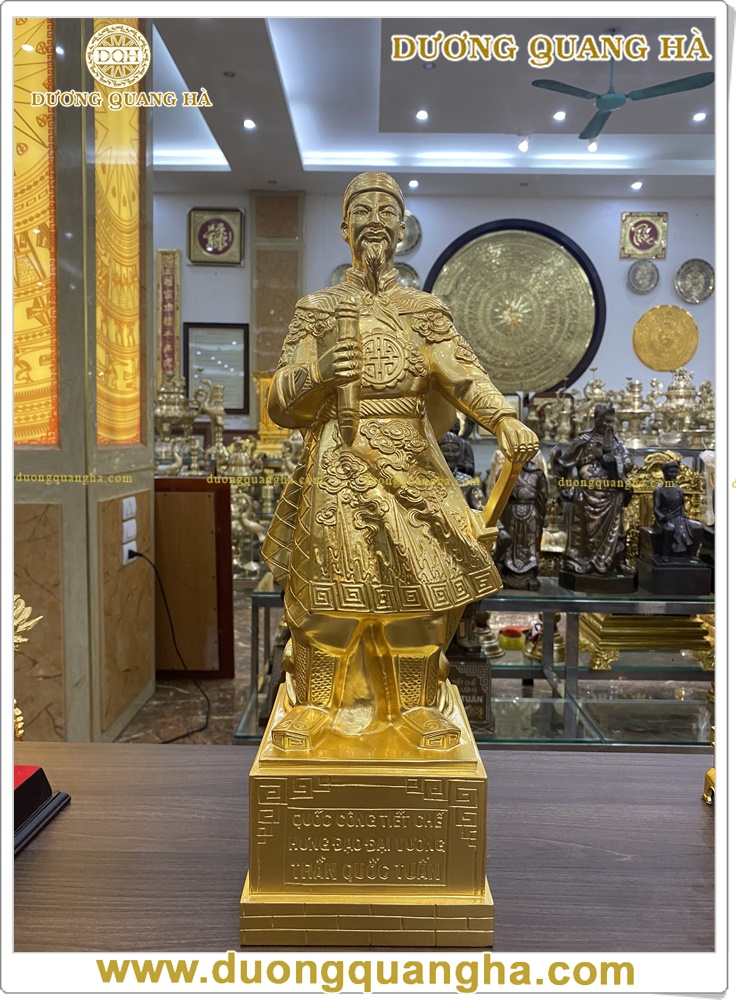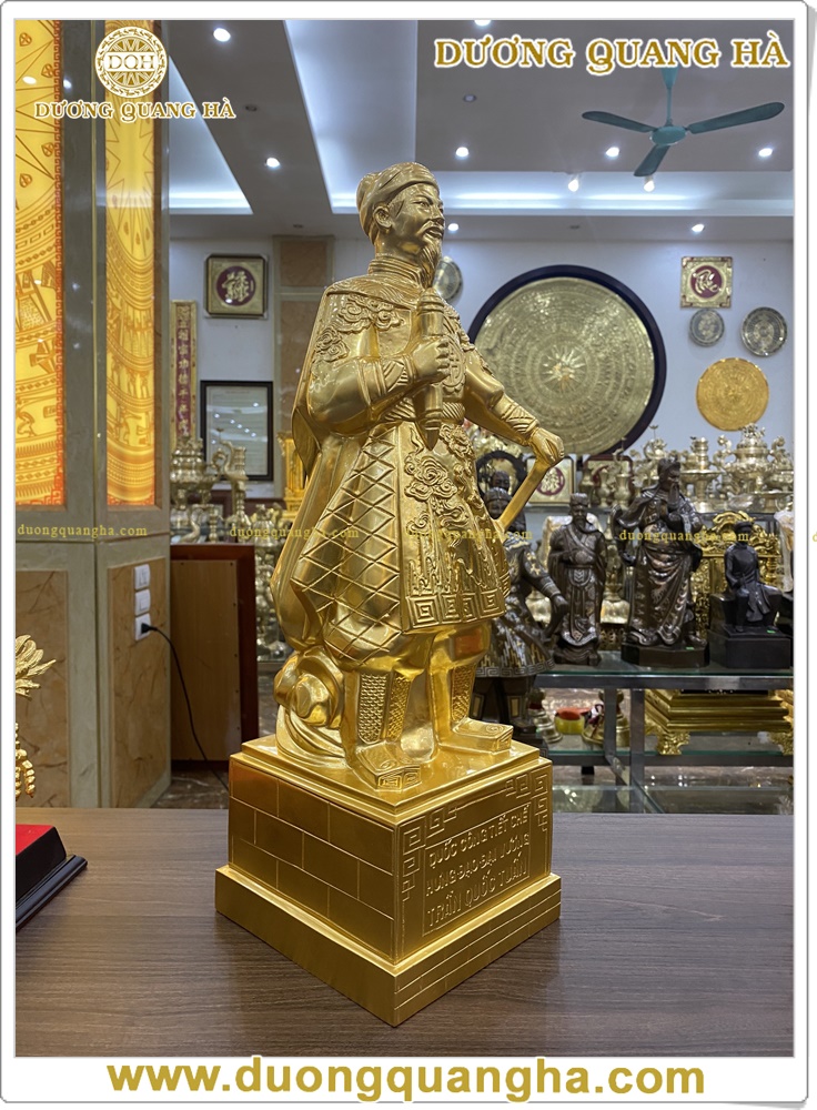 Tên sản phẩm : Tượng Trần Hưng Đạo Dát Vàng 9999 Hoạ Tiết Cày Nổi