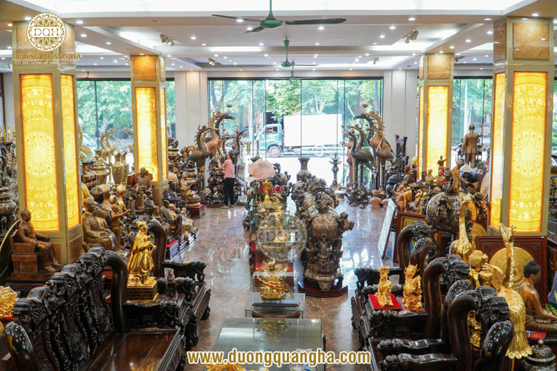 Mỗi sản phẩm đồ đồng tại showroom Dương Quang Hà đều được đúc tỉ mỉ, đường nét uyển chuyển, đẹp mắt